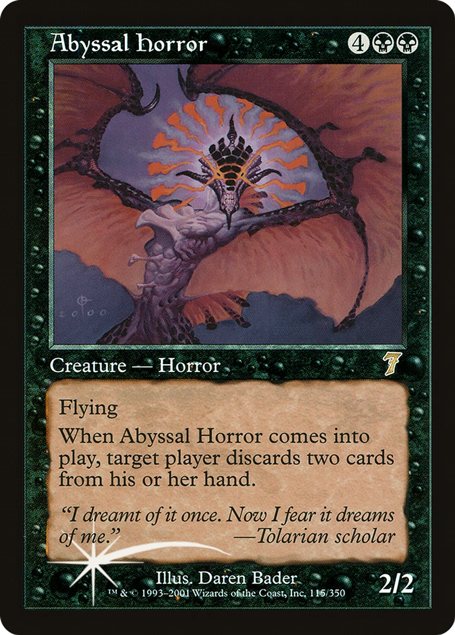 When Abyssal Horror enters the battlefield, target player discards two cards.