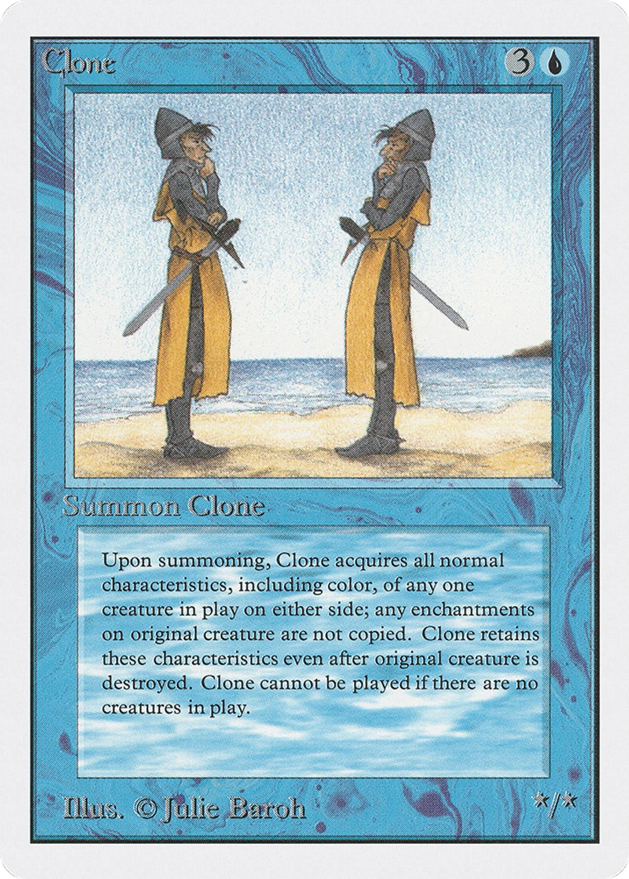 - Text: You may have Clone enter the battlefield as a copy of any creature on the battlefield.