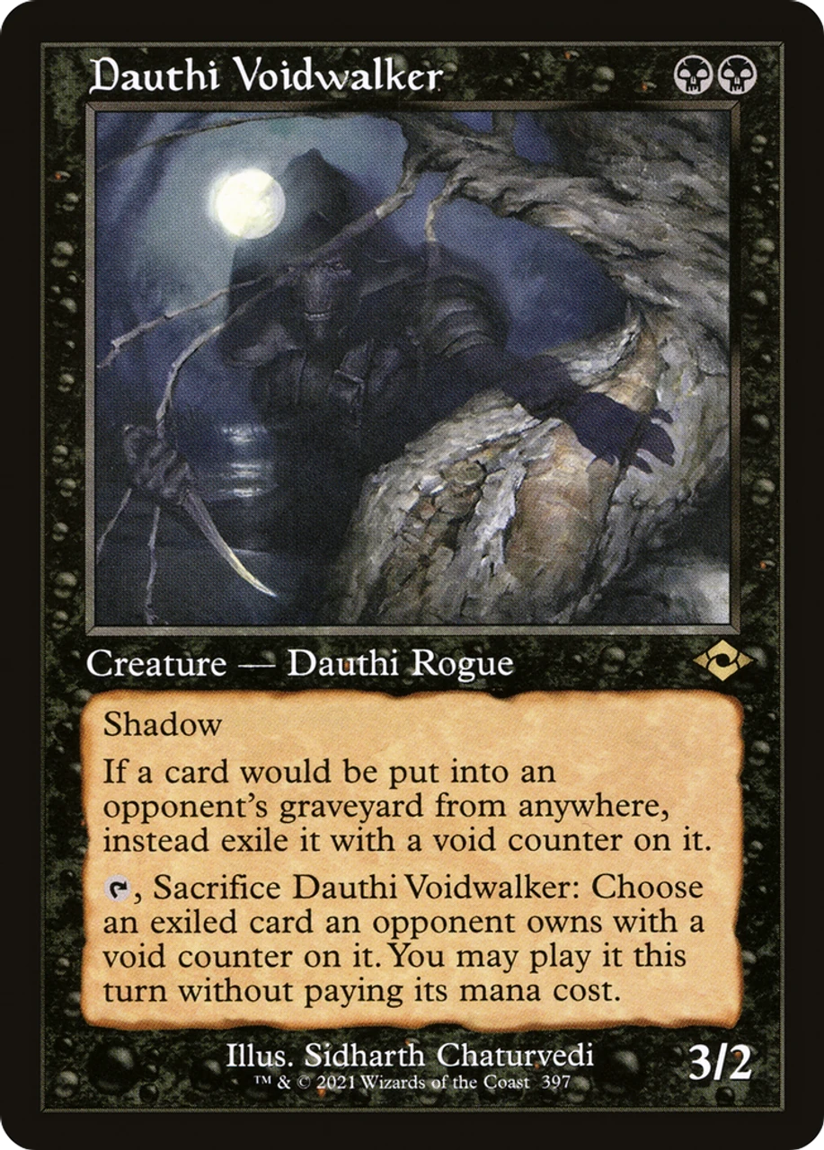 {T}, Sacrifice Dauthi Voidwalker: Choose an exiled card an opponent owns with a void counter on it. You may play it this turn without paying its mana cost.