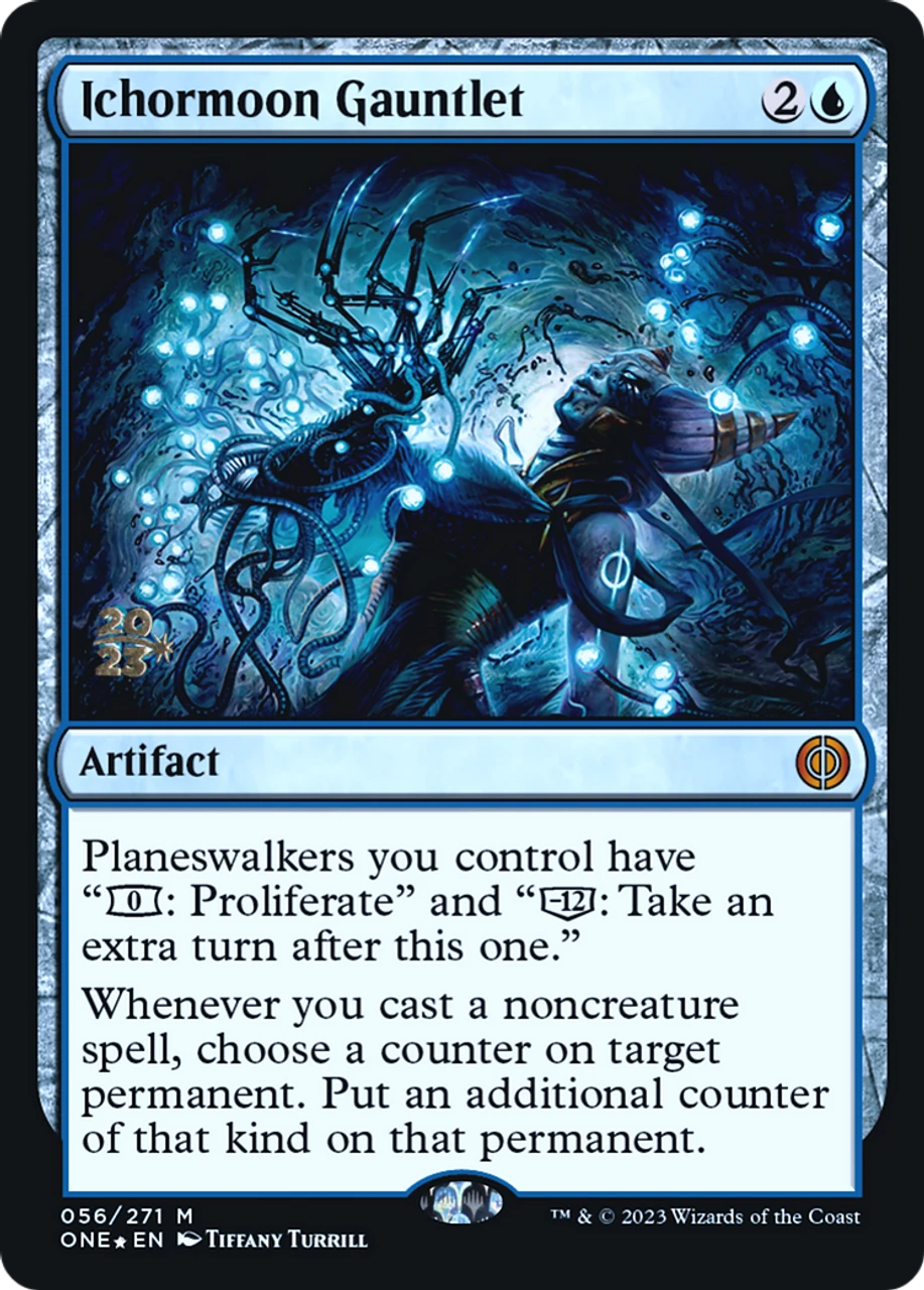 - Text: Planeswalkers you control have “[0]: Proliferate” and “[−12]: Take an extra turn after this one.”