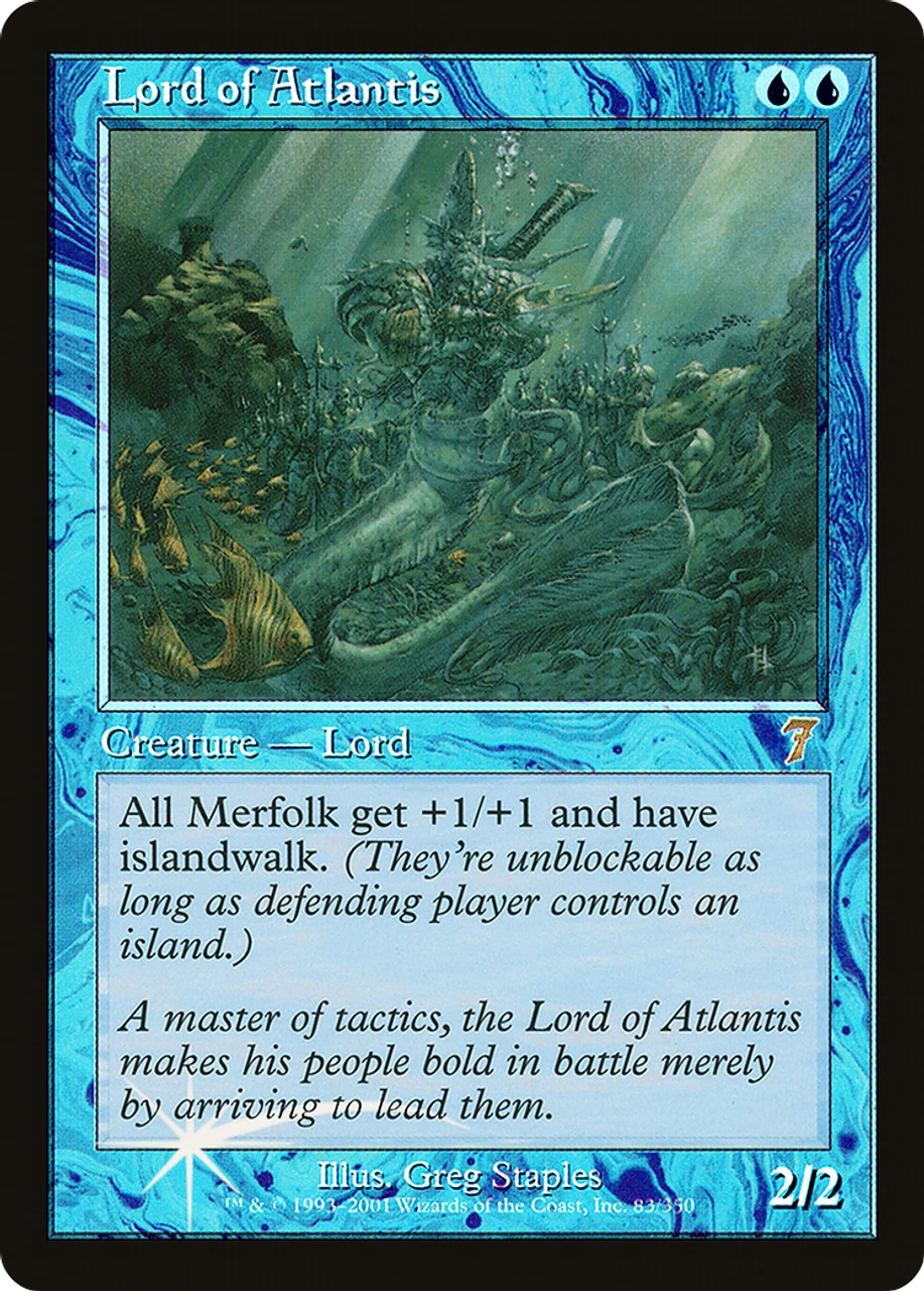 - Text: Other Merfolk get +1/+1 and have islandwalk. (They can’t be blocked as long as defending player controls an Island.)