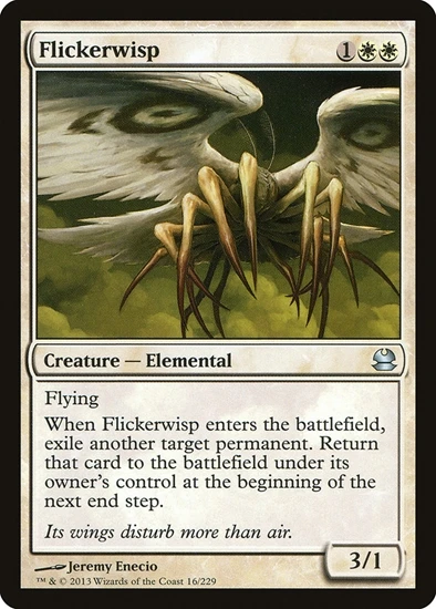 When Flickerwisp enters the battlefield, exile another target permanent. Return that card to the battlefield under its owner’s control at the beginning of the next end step.