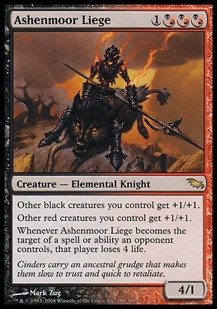 Whenever Ashenmoor Liege becomes the target of a spell or ability an opponent controls, that player loses 4 life.