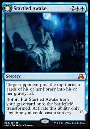 {3}{U}{U}: Put Startled Awake from your graveyard onto the battlefield transformed. Activate this ability only any time you could cast a sorcery.