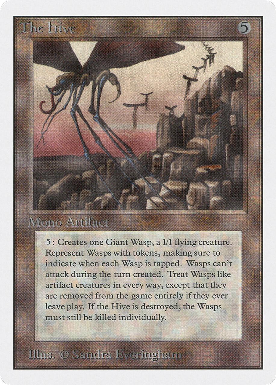 - Text: {5}, {T}: Create a 1/1 colorless Insect artifact creature token with flying named Wasp. (It can’t be blocked except by creatures with flying or reach.)