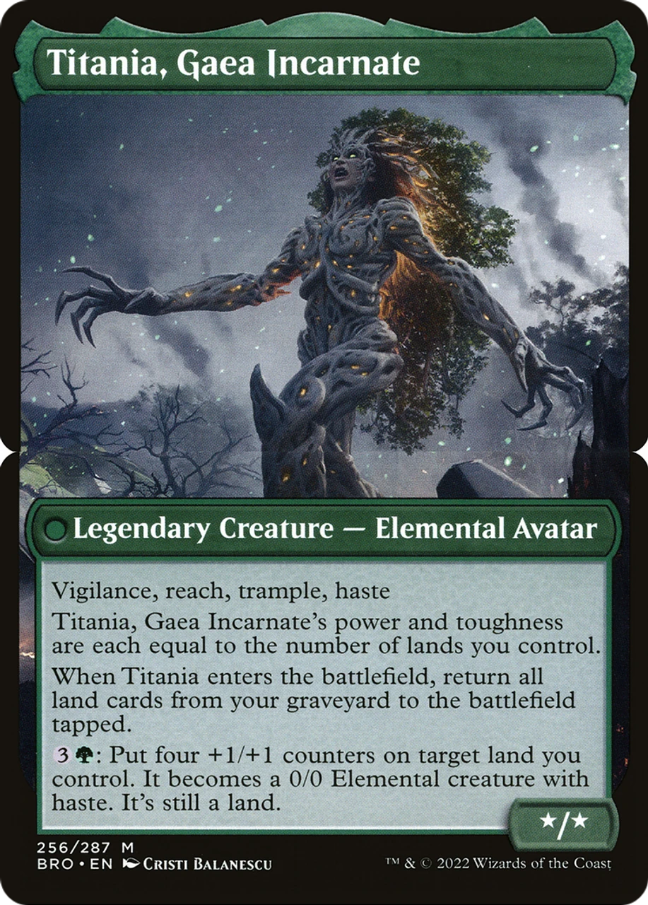 Titania, Gaea Incarnate’s power and toughness are each equal to the number of lands you control.