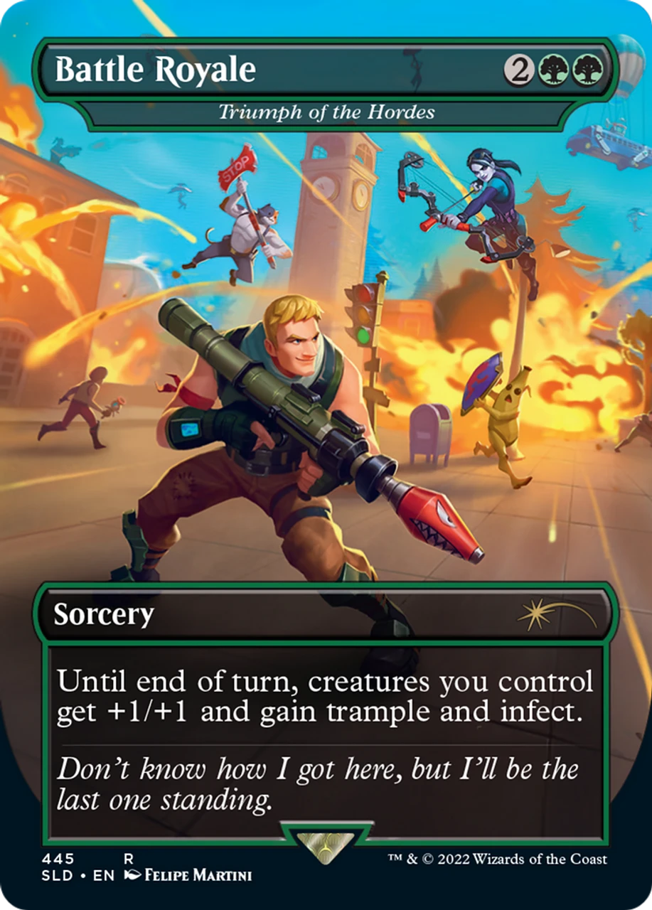 - Text: Until end of turn, creatures you control get +1/+1 and gain trample and infect. (Creatures with infect deal damage to creatures in the form of -1/-1 counters and to players in the form of poison counters.)